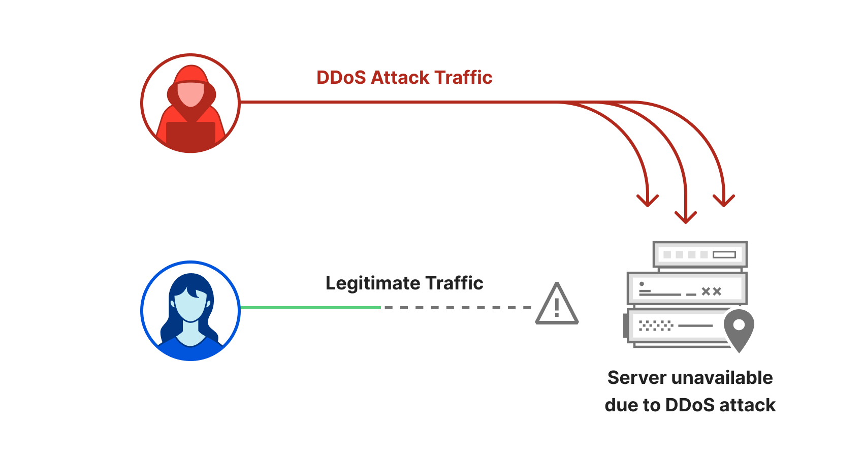 Copy linkApplication-layer DDoS attacks, specifically HTTP DDoS attacks, are attacks that usually aim to disrupt a web server by making it unable to process legitimate user requests. If a server is bombarded with more requests than it can process, the server will drop legitimate requests and - in some cases - crash, resulting in degraded performance or an outage for legitimate users.