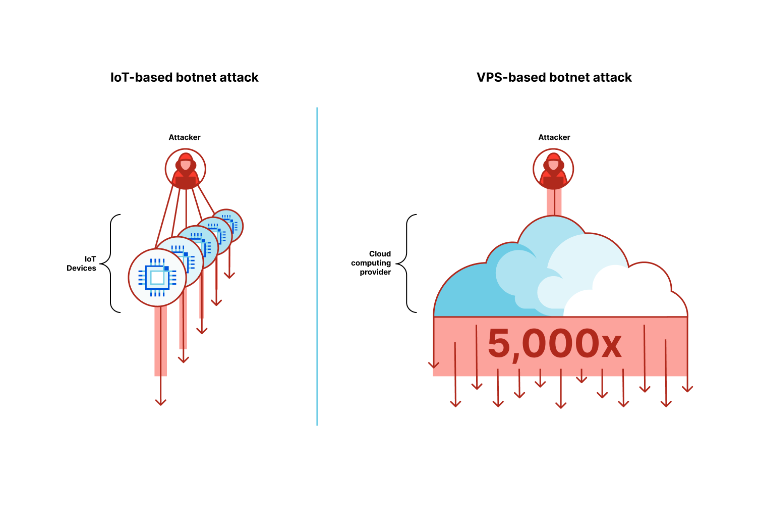 Because of the computational and bandwidth resources that are at the disposal of these VM-based botnets, they’re able to generate hyper-volumetric attacks with a much smaller fleet size compared to IoT-based botnets.