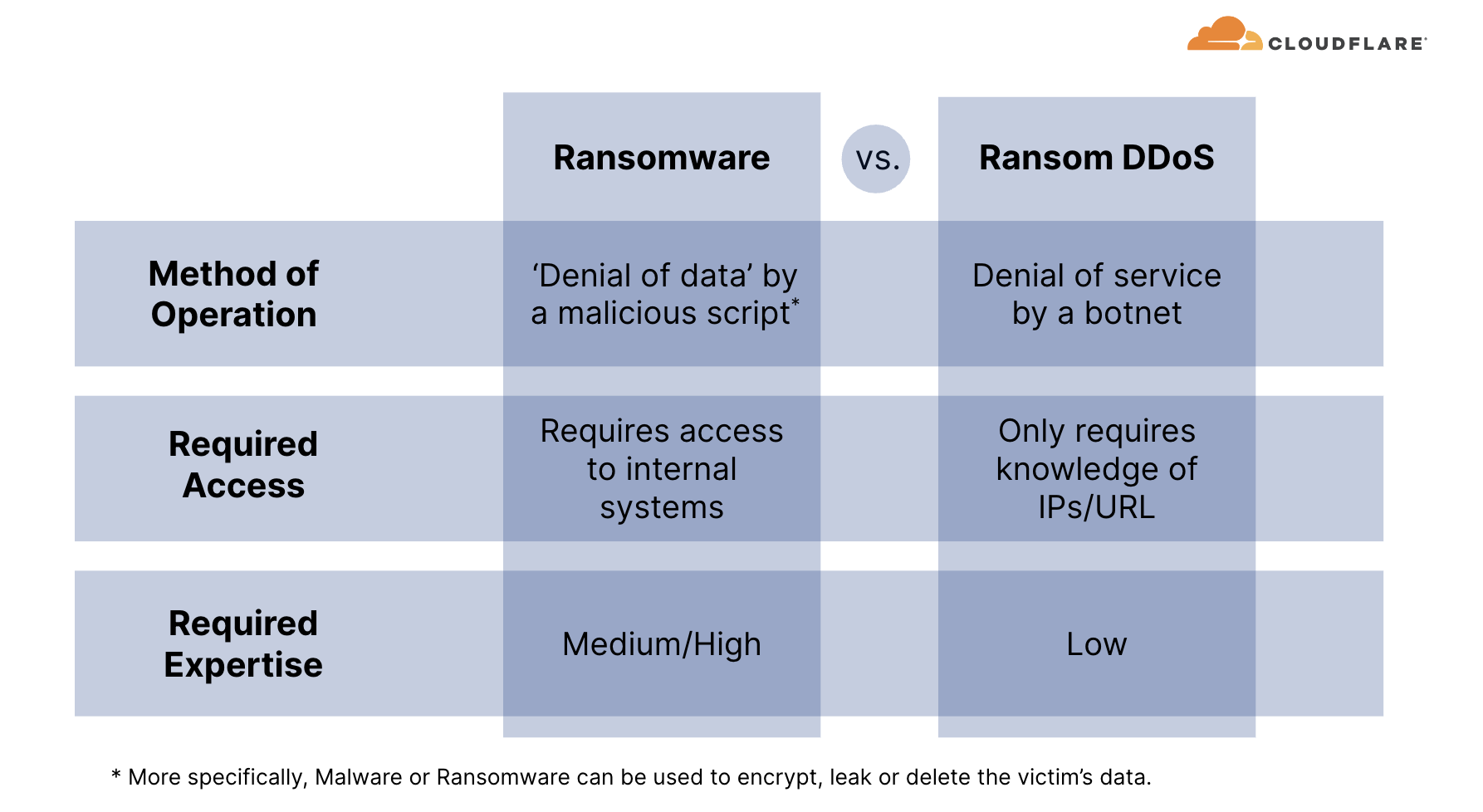 Unlike Ransomware attacks, where victims typically fall prey to downloading a malicious file or clicking on a compromised email link which locks, deletes or leaks their files until a ransom is paid, Ransom DDoS attacks can be much simpler for threat actors to execute. Ransom DDoS attacks bypass the need for deceptive tactics such as luring victims into opening dubious emails or clicking on fraudulent links, and they don't necessitate a breach into the network or access to corporate resources.