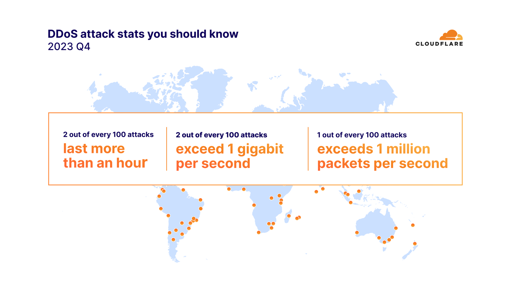 Copy link2023 was the year of uncharted territories. DDoS attacks reached new heights — in size and sophistication. The wider Internet community, including Cloudflare, faced a persistent and deliberately engineered campaign of thousands of hyper-volumetric DDoS attacks at never before seen rates.