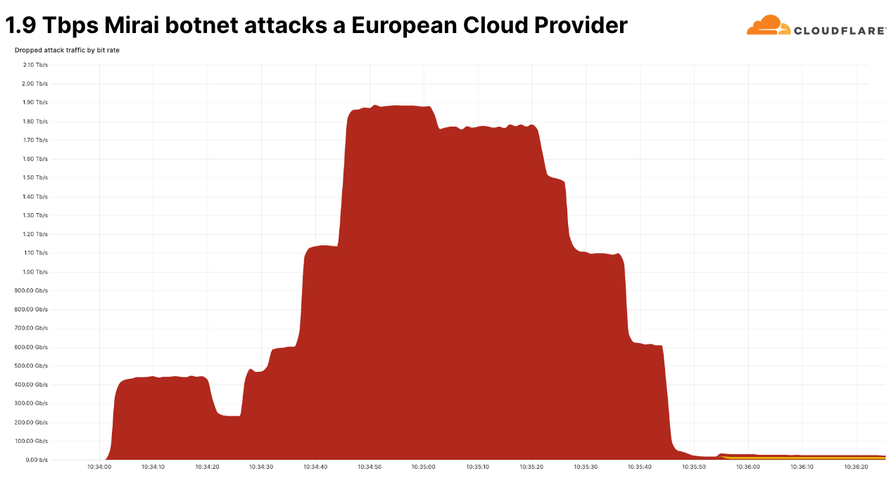This attack targeted a known European Cloud Provider and originated from over 18 thousand unique IP addresses that are assumed to be spoofed. It was automatically detected and mitigated by Cloudflare’s defenses.