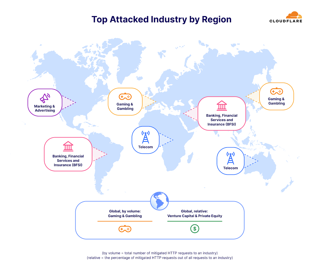 When analyzing only the HTTP DDoS attacks, we see a different picture. Gaming and Gambling saw the most attacks in terms of HTTP DDoS attack request volume. The per-region breakdown is provided below.