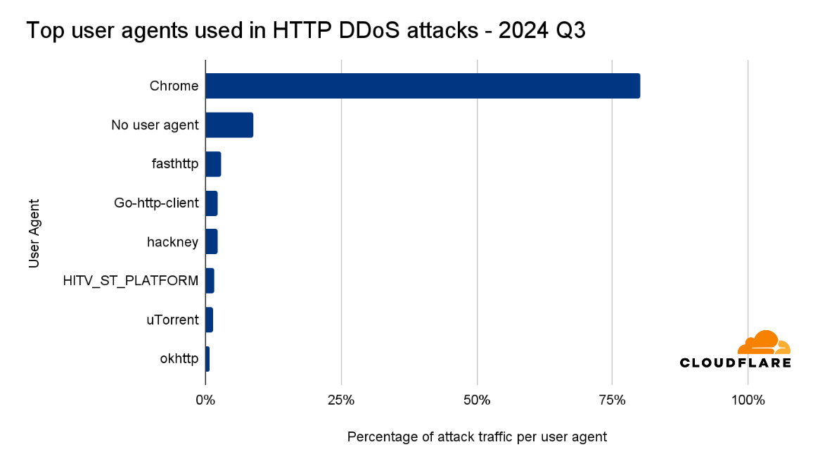 In second place, no user agent was seen for 9% of HTTP DDoS attack traffic.