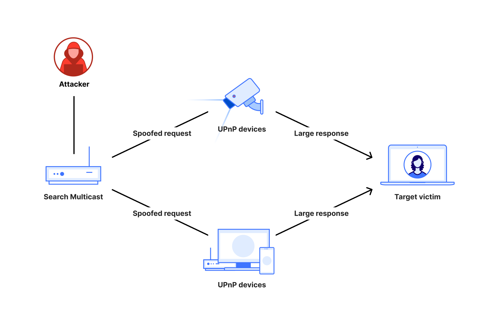 In Q3, we observed a 4,000% increase in SSDP amplification attacks compared to the previous quarter. An SSDP (Simple Service Discovery Protocol) attack is a type of reflection and amplification DDoS attack that exploits the UPnP (Universal Plug and Play) protocol. Attackers send SSDP requests to vulnerable UPnP-enabled devices such as routers, printers, and IP-enabled cameras, and spoof the source IP address to be the victim’s IP address. These devices respond to the victim’s IP address with large amounts of traffic, overwhelming the victim’s infrastructure. The amplification effect allows attackers to generate massive traffic from small requests, causing the victim’s service to go offline. Disabling UPnP on unnecessary devices and using DDoS mitigation strategies can help defend against this attack.