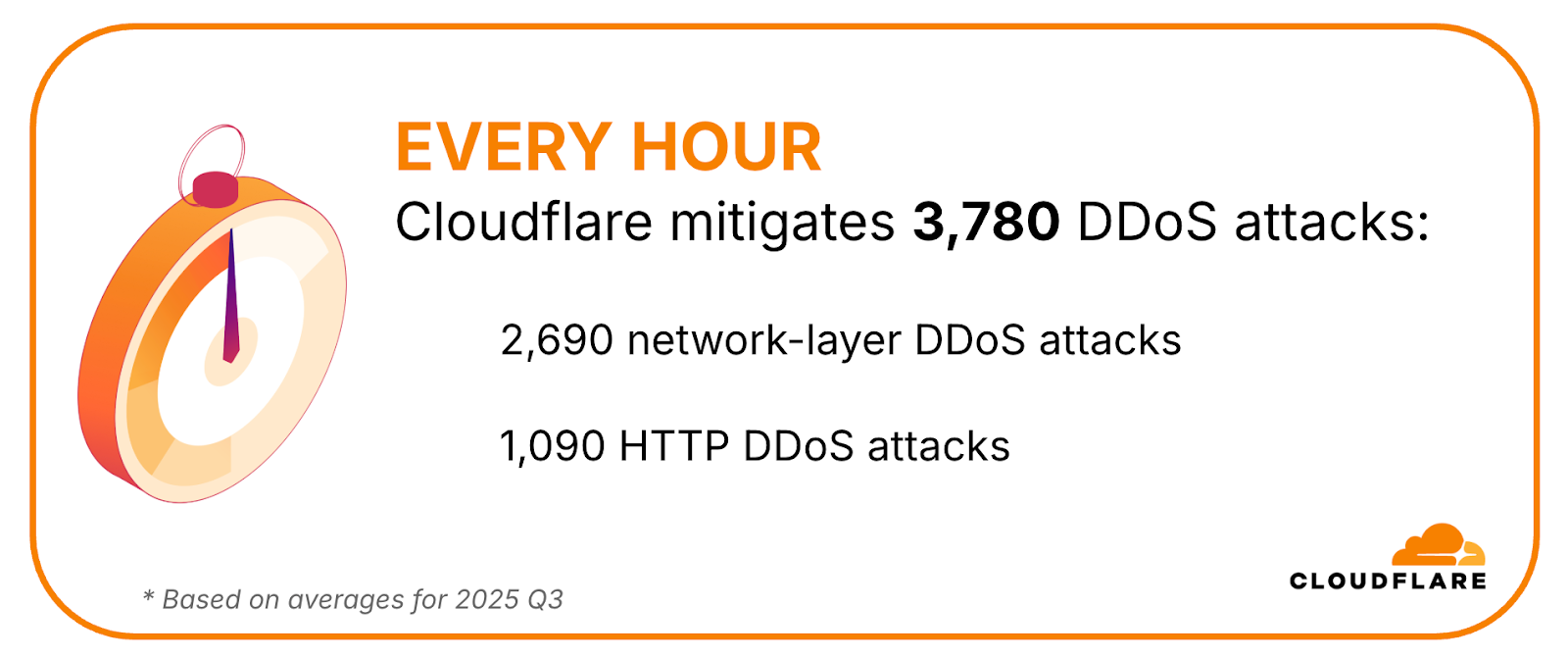 In the third quarter of 2025, Cloudflare mitigated an average of 3,780 DDoS attacks every hour.